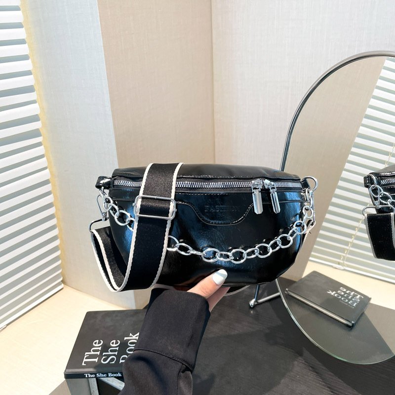 Crossbody chest bag for women, fashionable, simple, retro style, chain decorated waist bag, fashionable shoulder bagCrossbody chest bag for women, fashionable, simple, retro style, chain decorated waist bag, fashionable shoulder bag