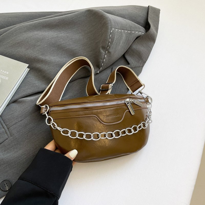 Crossbody chest bag for women, fashionable, simple, retro style, chain decorated waist bag, fashionable shoulder bag