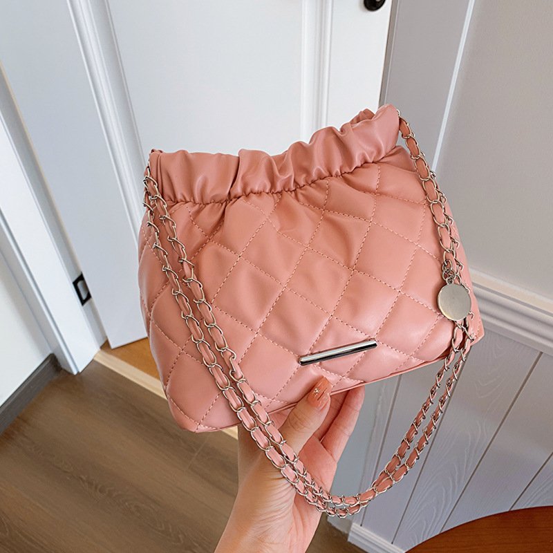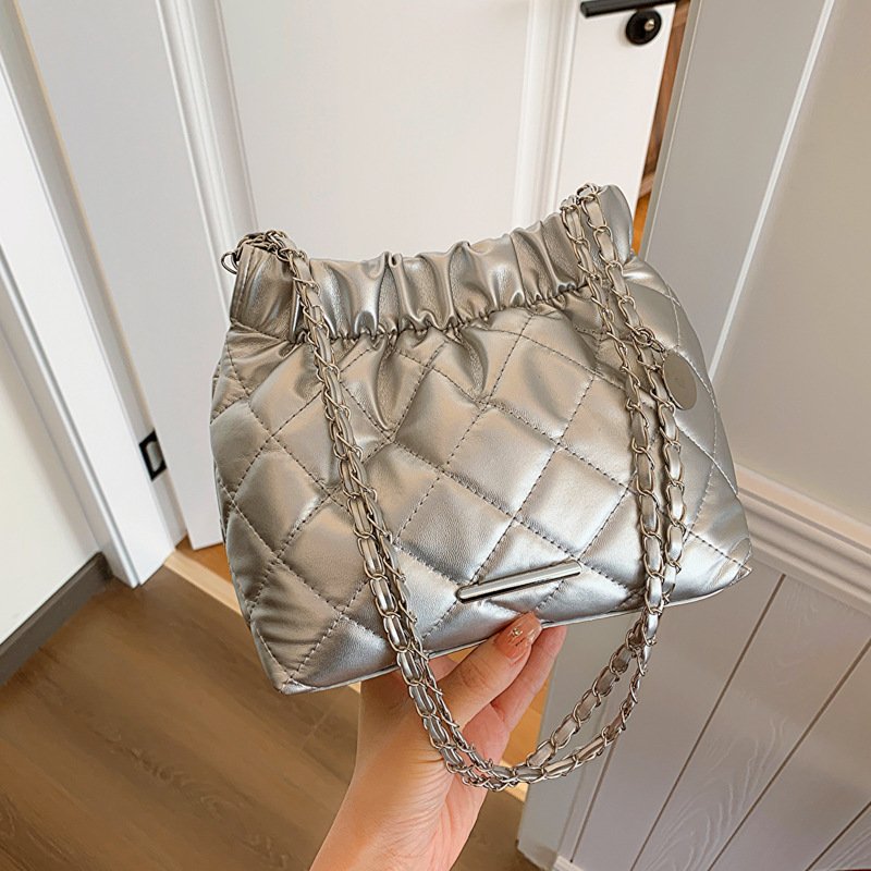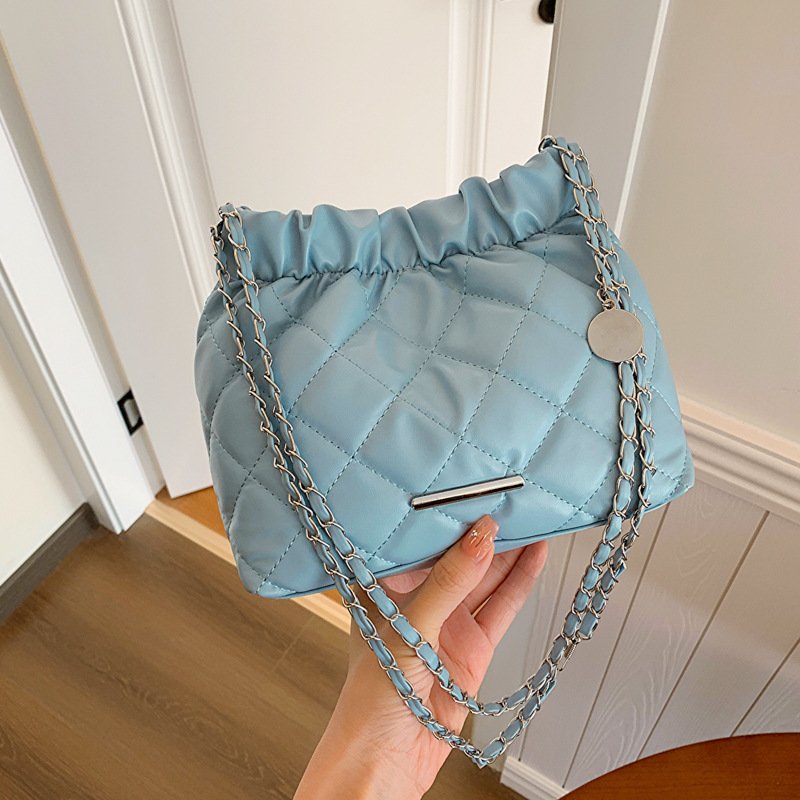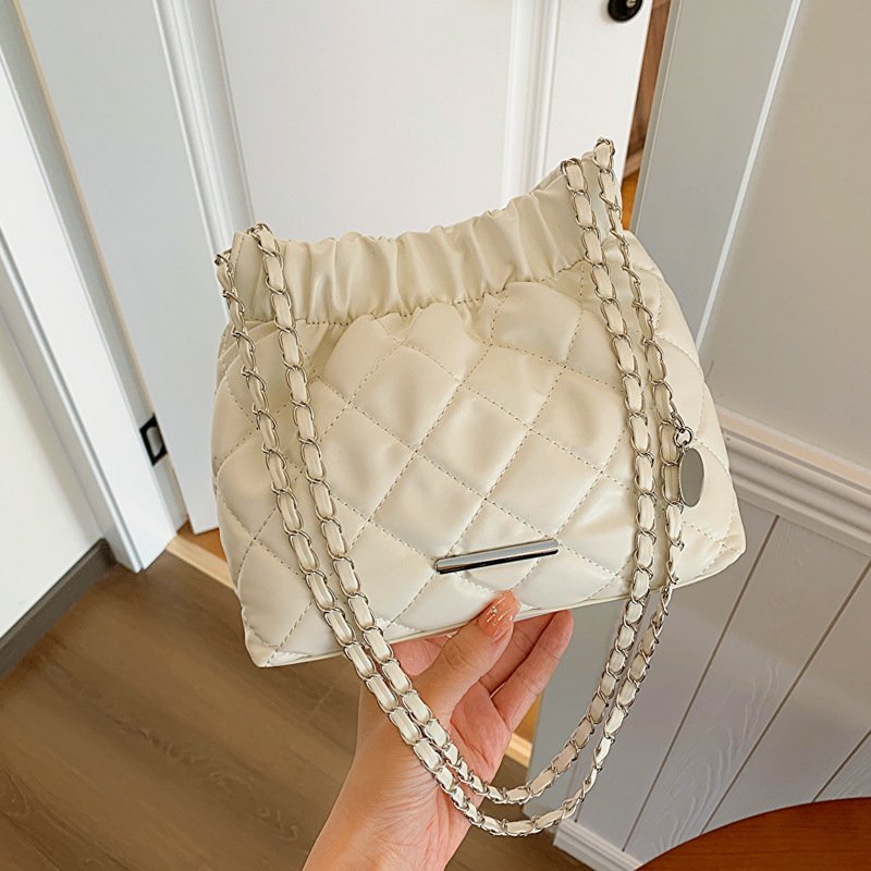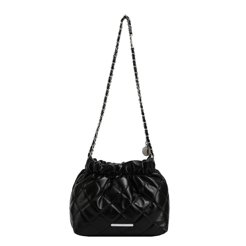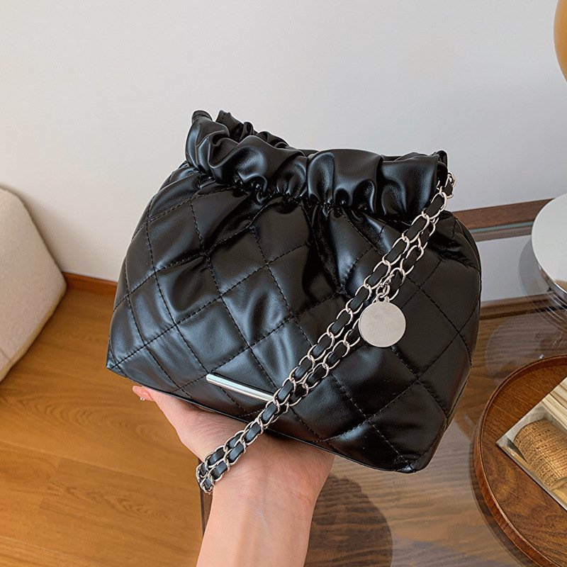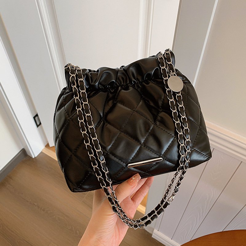 Diamond embroidery fashion chain drawstring bag women’s winter all-match crossbody bucket bag