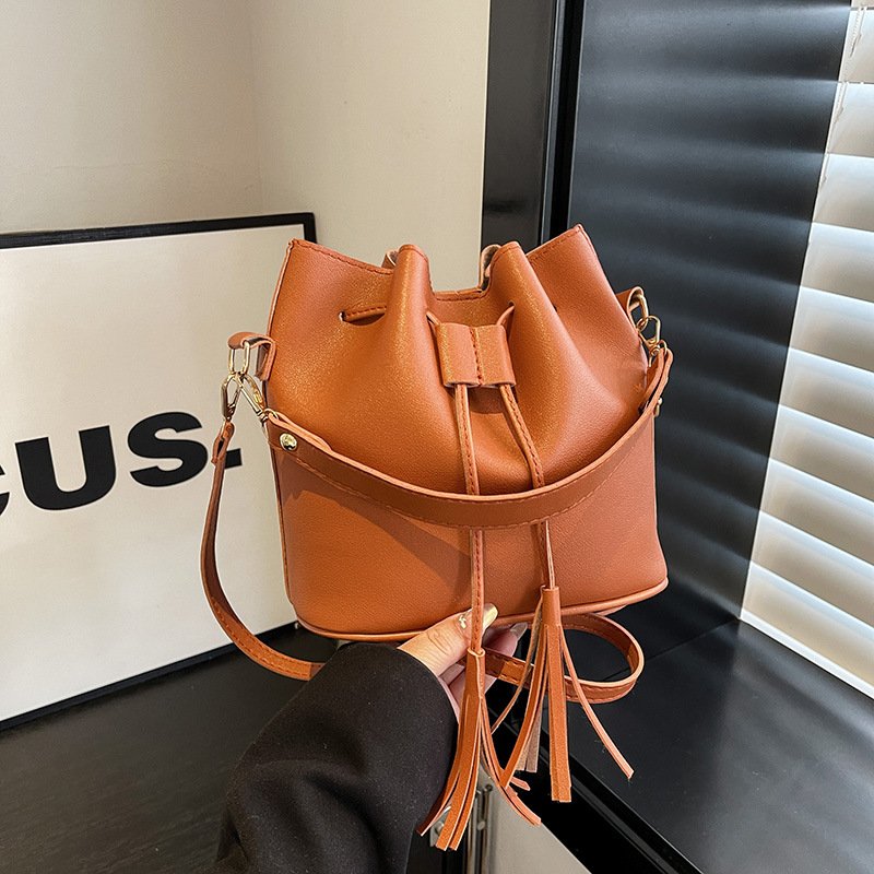Drawstring Bucket Bag Spring and Today Popular Solid Color Retro Women’s Bag Simple and Versatile One-shoulder Crossbody Bag Trendy