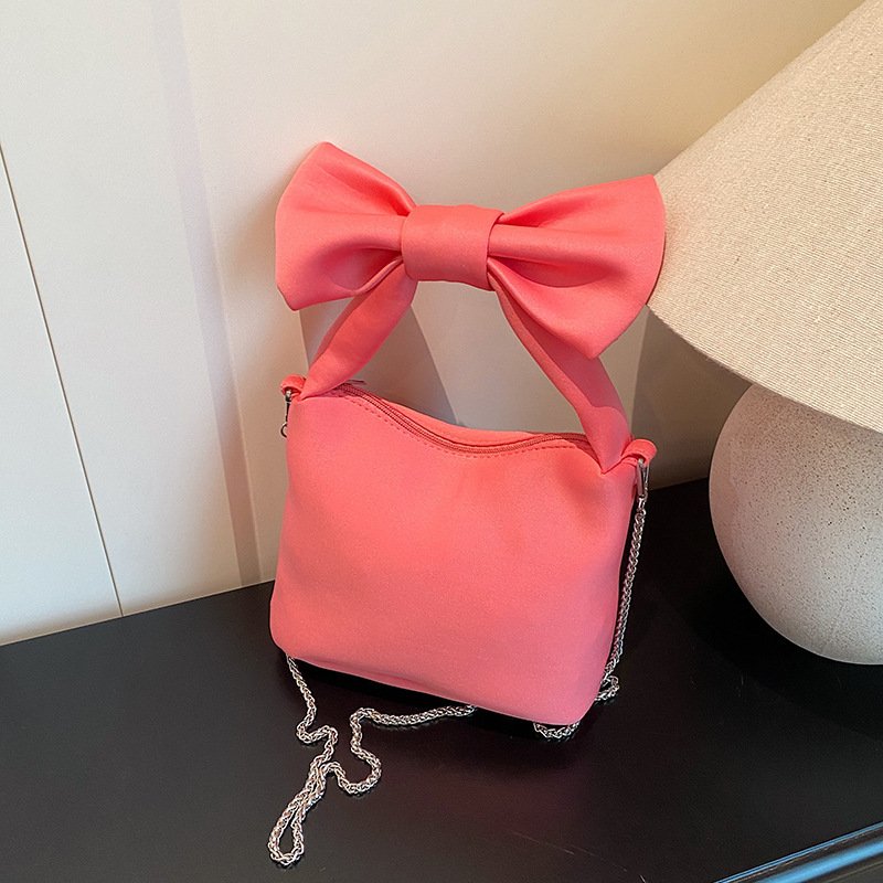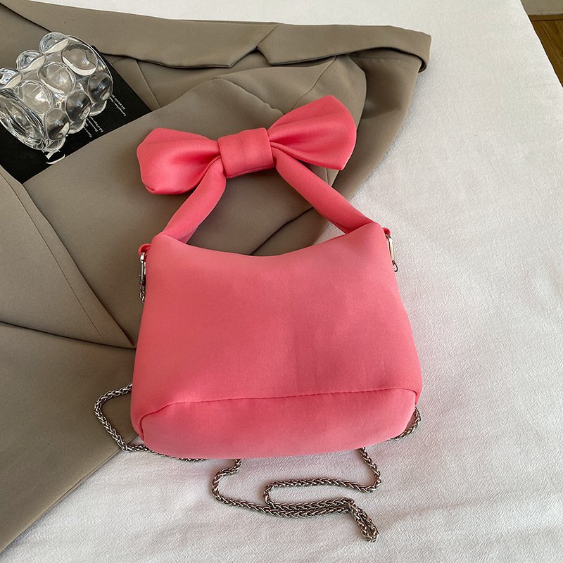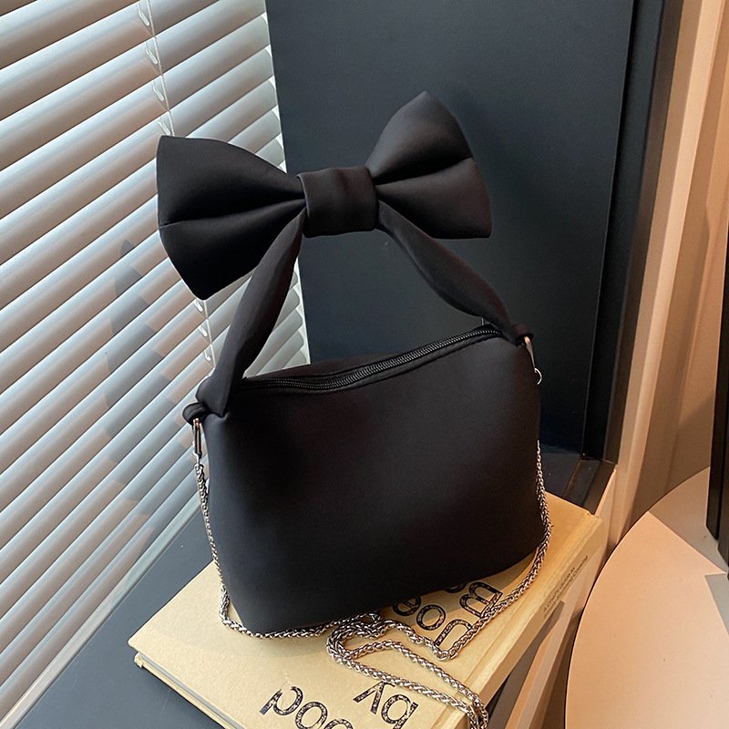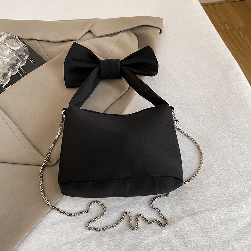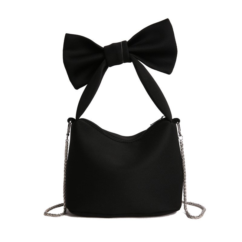 Fashion niche bow bag women’s casual versatile chain canvas handbag crossbody bag