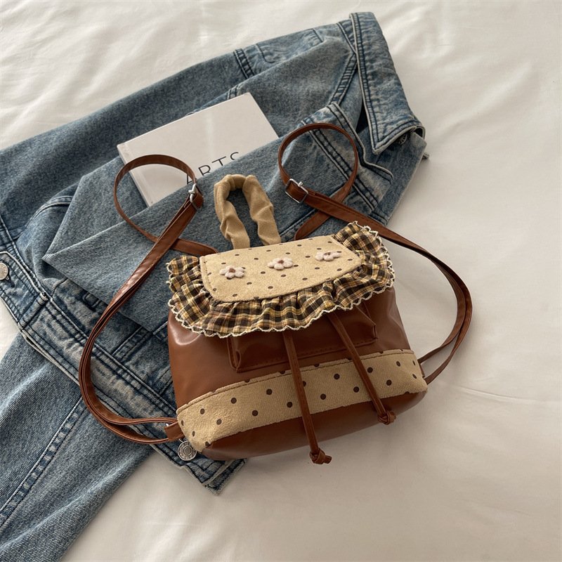 Fashionable patchwork small flower mini backpack bag for women, fashionable, versatile and cute small backpack gift