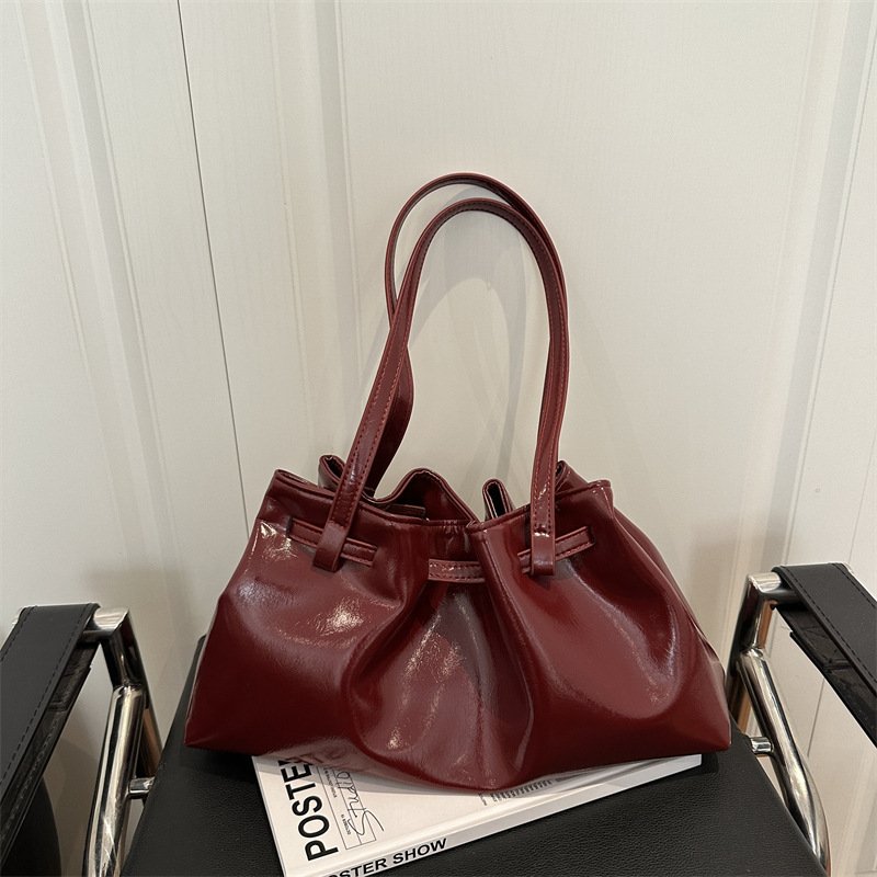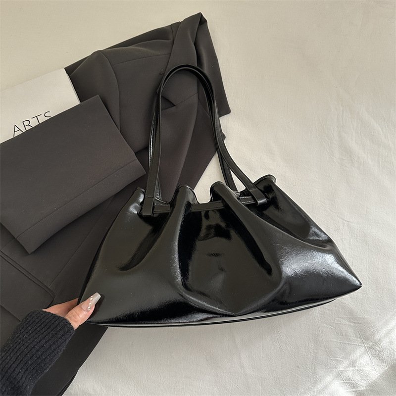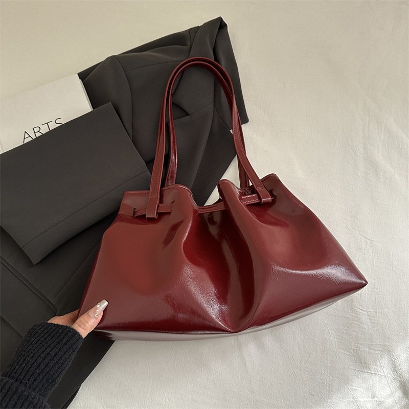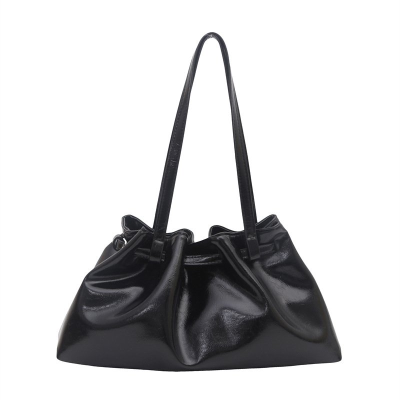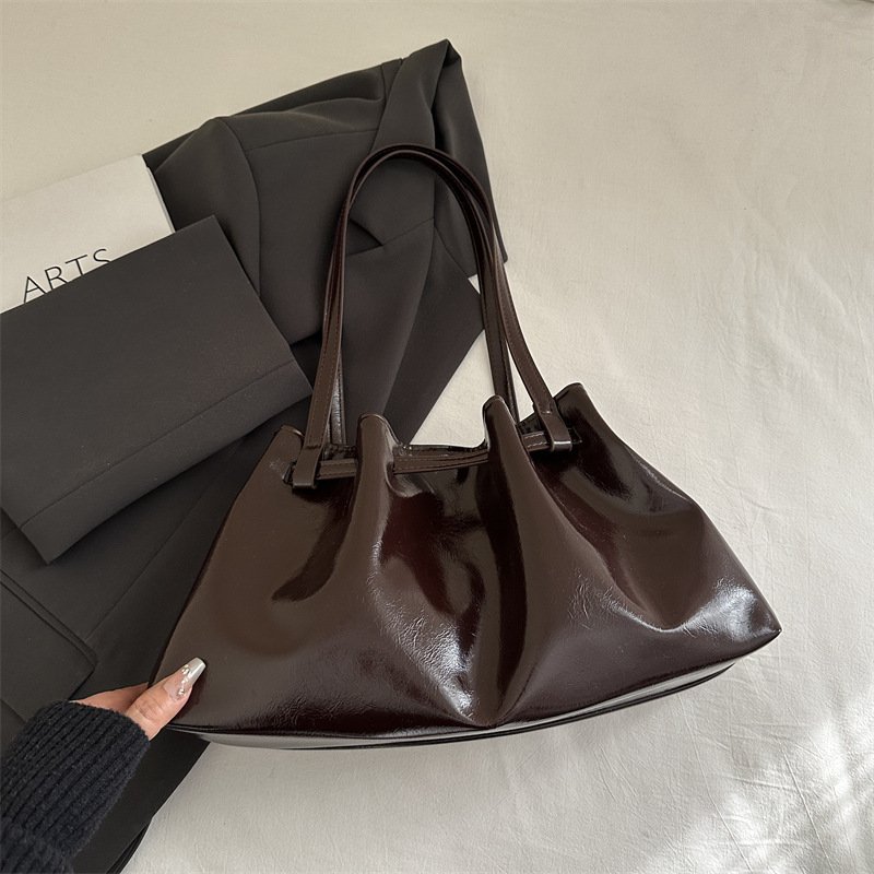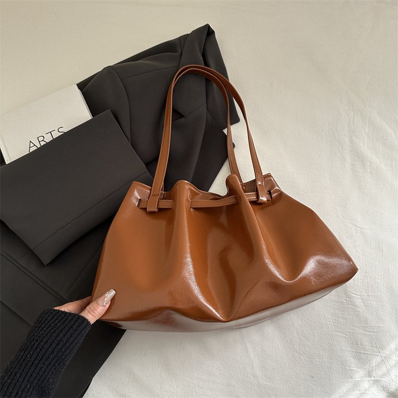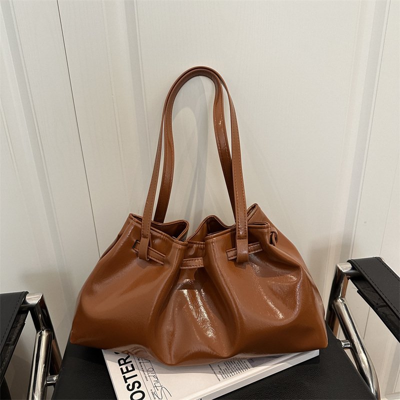 Fashionable pleated women’s bag underarm tote bag quality waxed leather commuter shoulder bag versatile