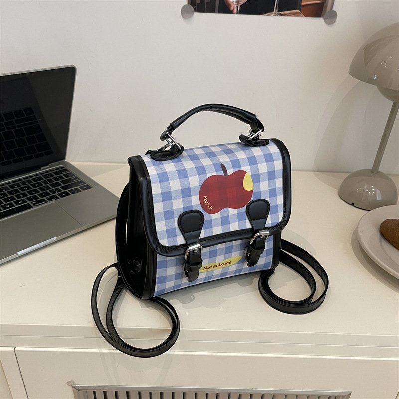 Handbag, textured plaid splicing, office worker, western-style shoulder bag, trendy temperament cross-body bag