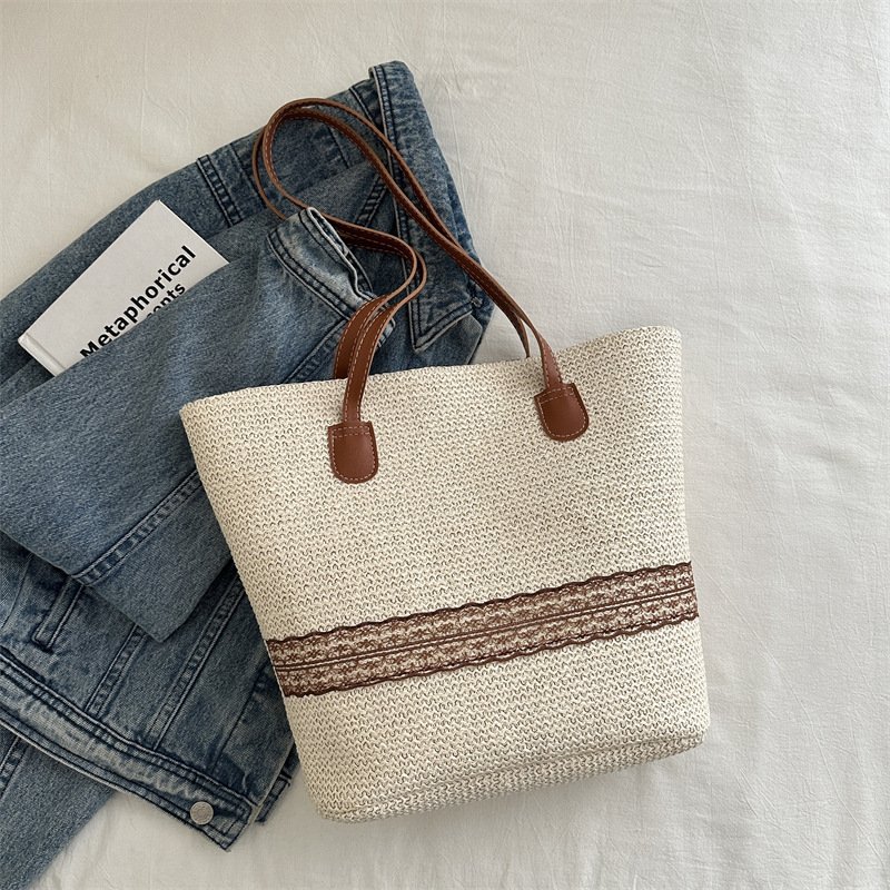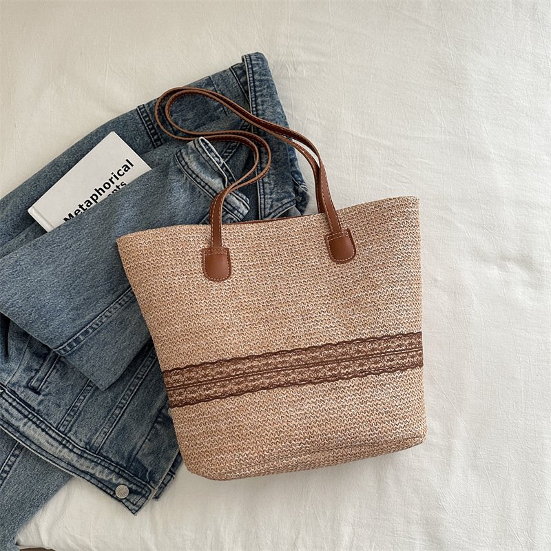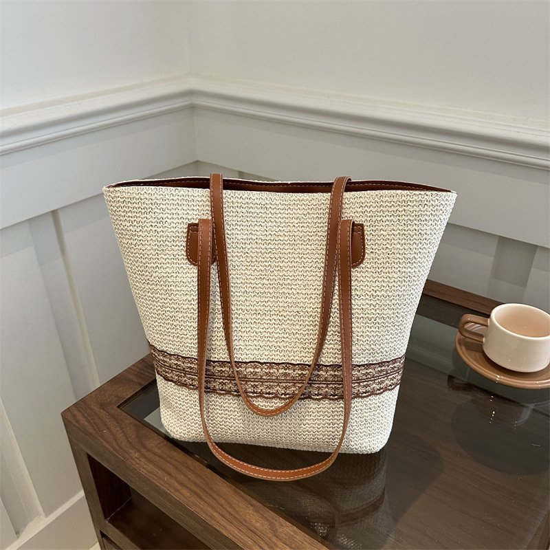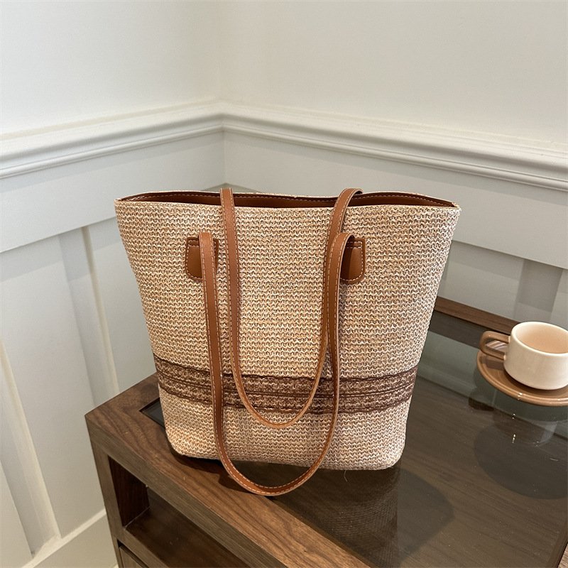 Large-capacity fashionable spliced bucket bag, versatile casual bag, shoulder tote bag