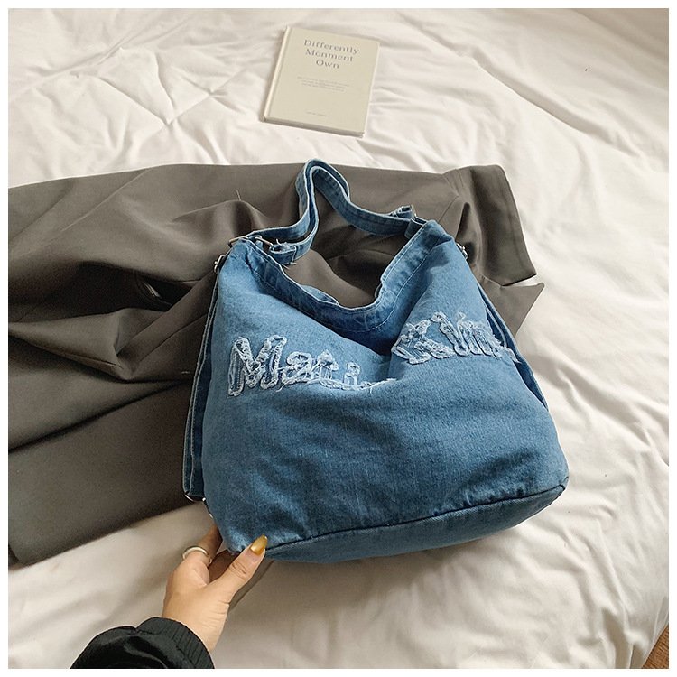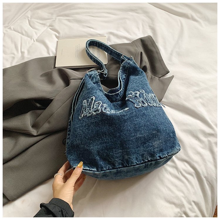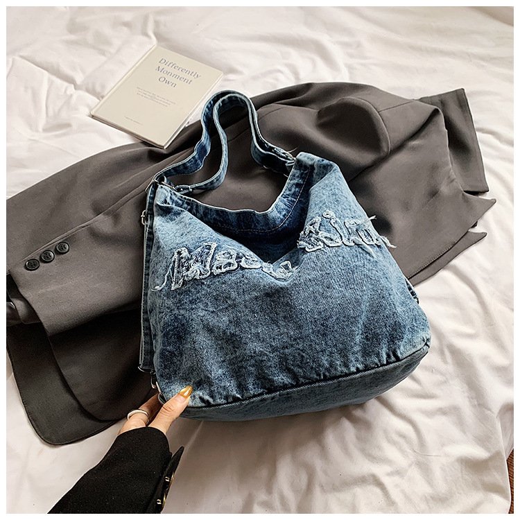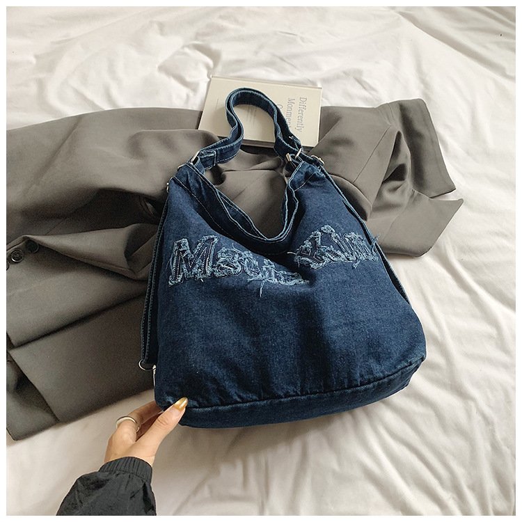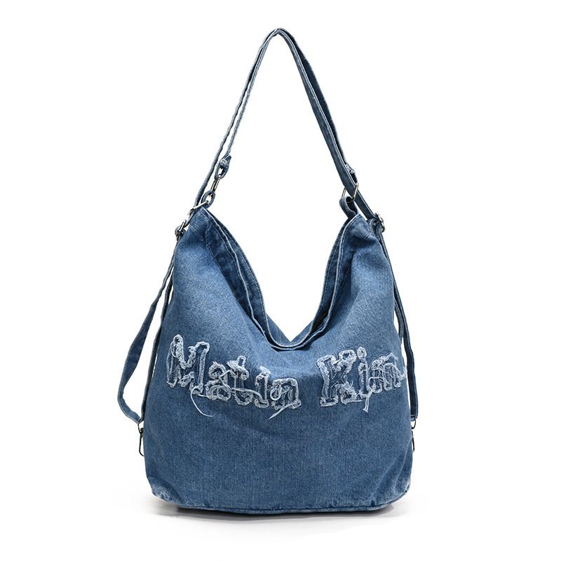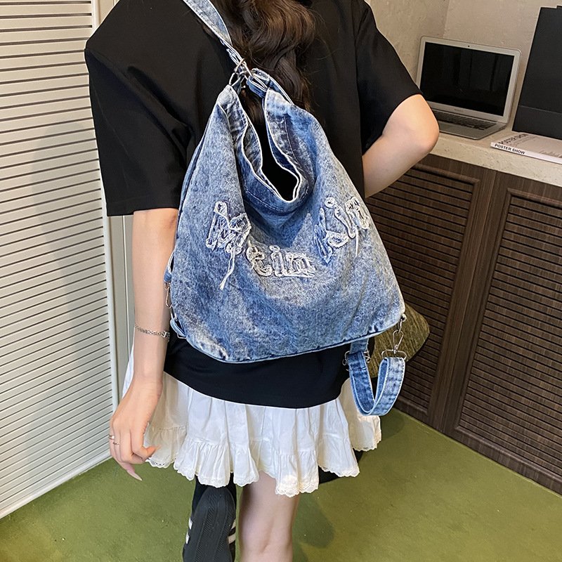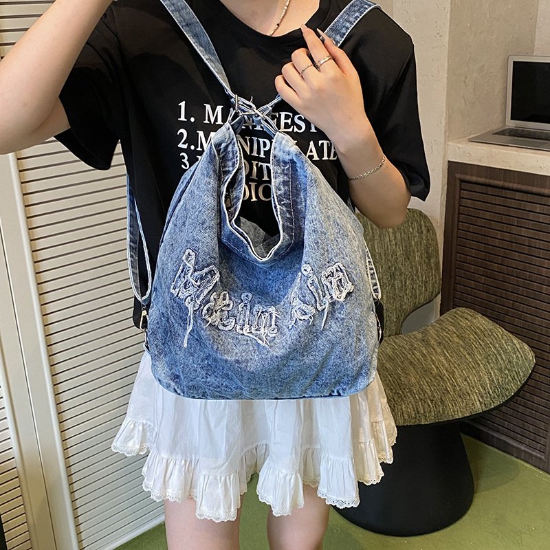Large-capacity high-end commuter tote bag female denim one-pack three-use student cross-body tablet backpack