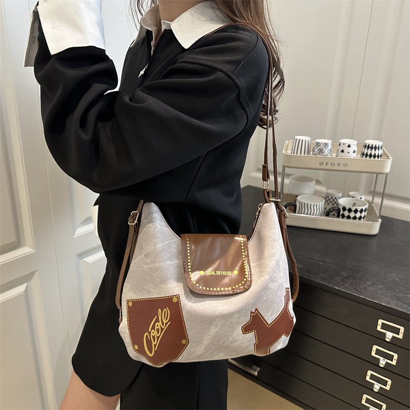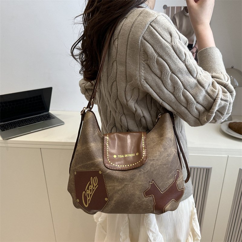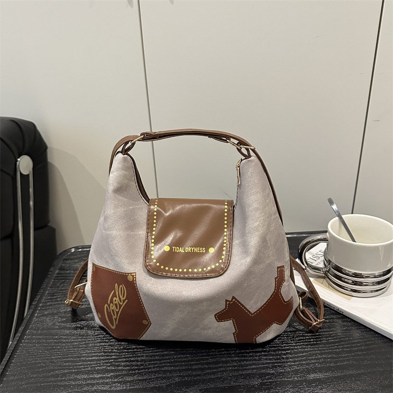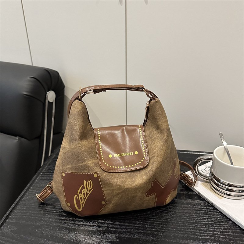Large-capacity tote bag for women, retro, casual, simple, solid color commuter bag, shoulder bag