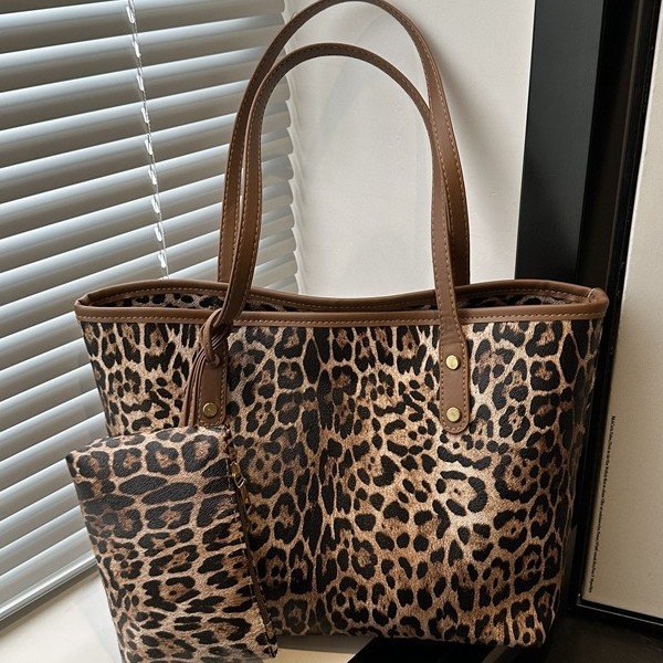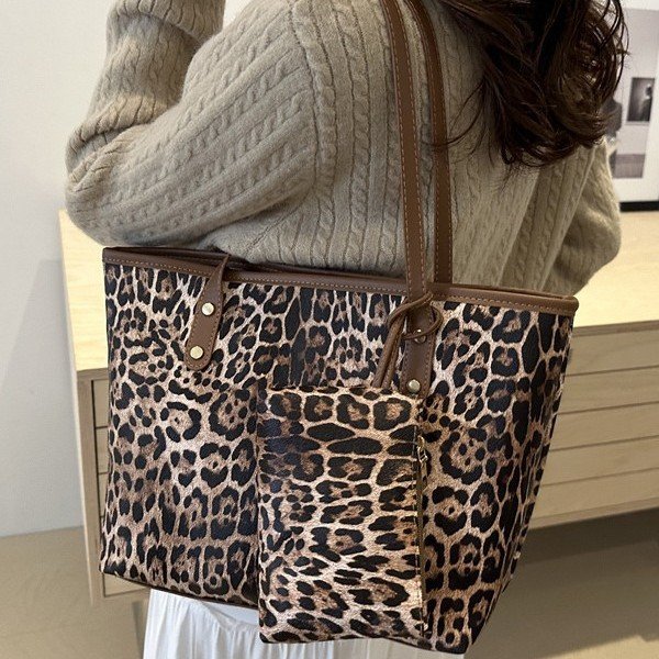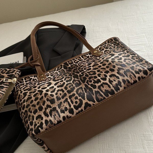 Leopard print tote bag large capacity women’s commuting all-match handbag shoulder shopping bag women’s bag