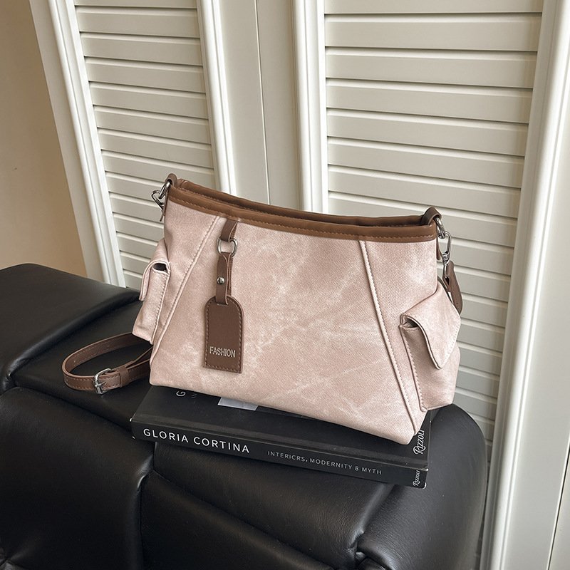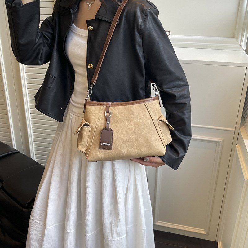 Light luxury portable bucket bag women’s bag autumn stitching contrasting color shoulder bag commuter crossbody bag