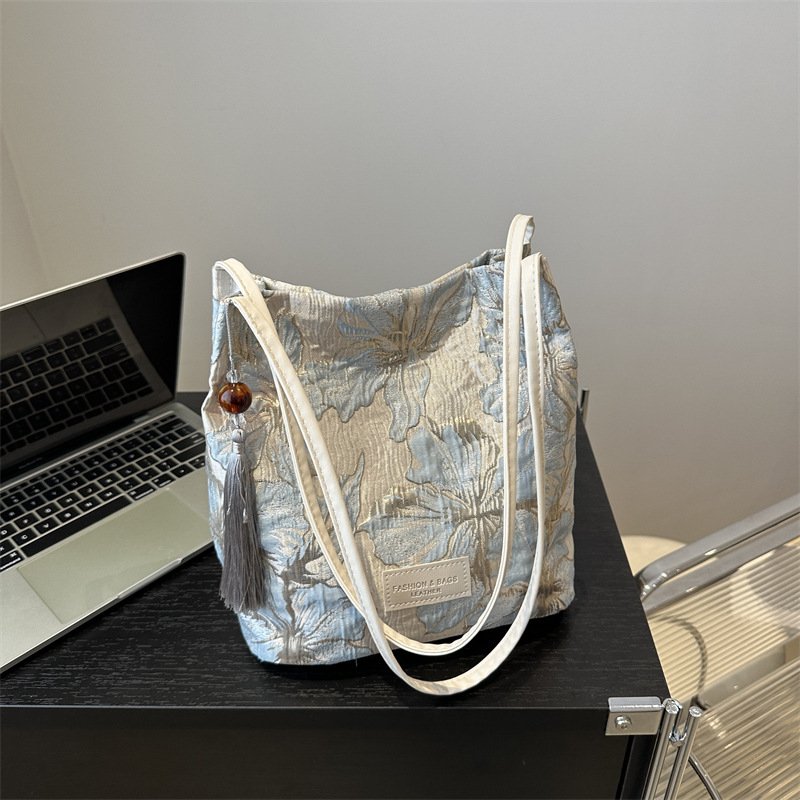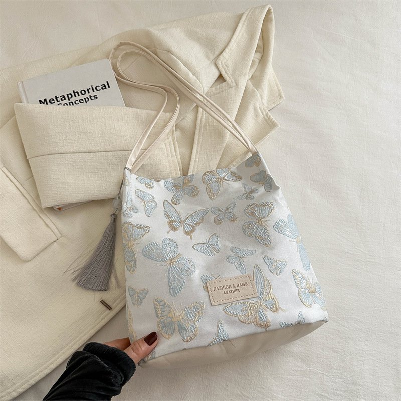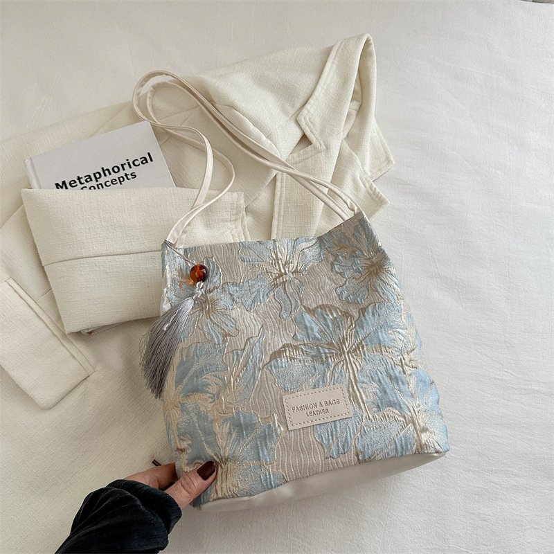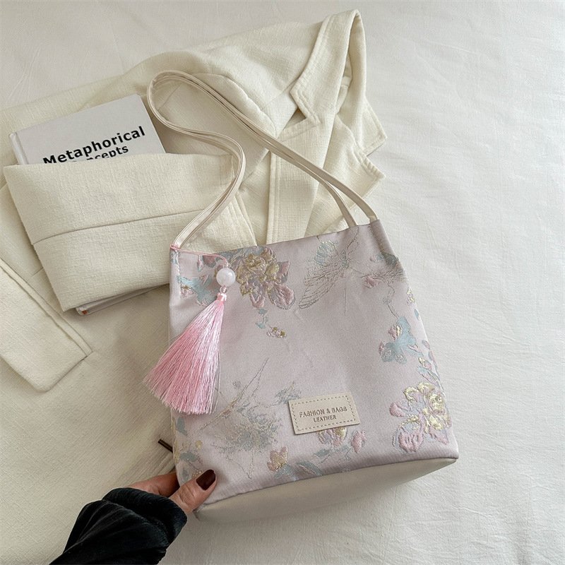 New Chinese style national style embroidered satin bag niche design shoulder handheld crossbody bucket bag