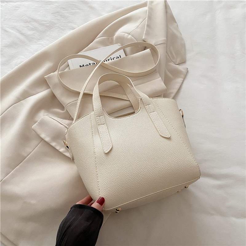 Niche silver high-end vegetable basket handbag litchi texture one-shoulder crossbody bag for women