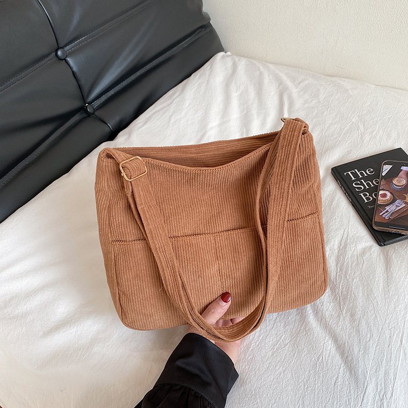Popular corduroy trendy large-capacity bag women’s fashionable commuter bag fashionable shoulder tote bag
