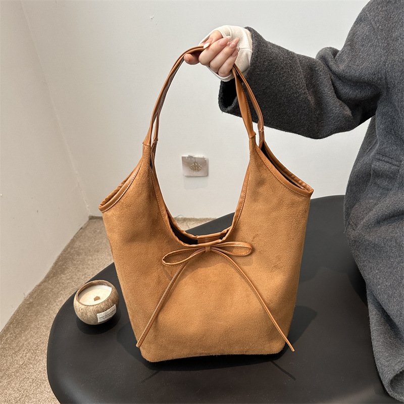 Retro frosted armpit bag women’s bucket bag casual large capacity shoulder tote bag