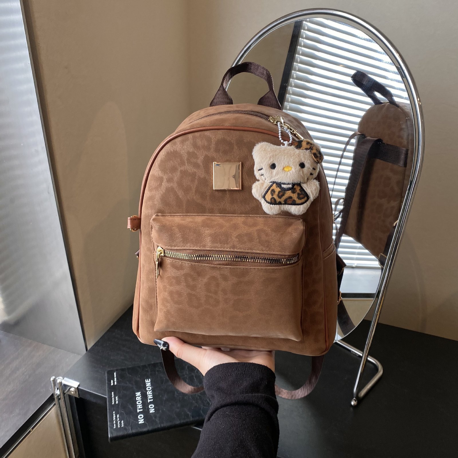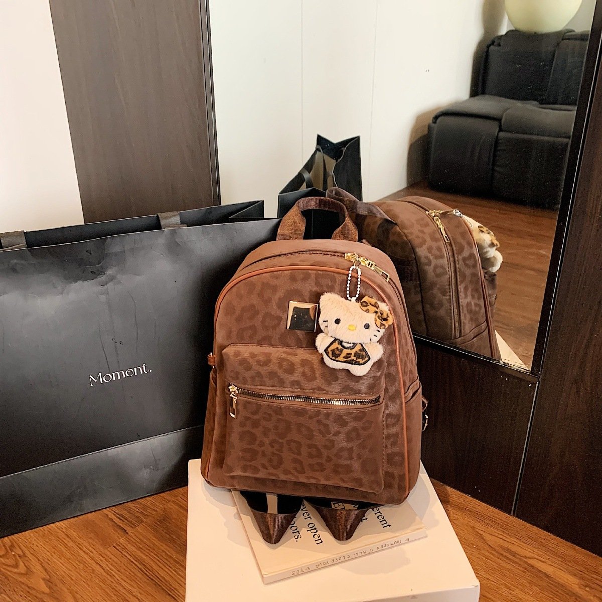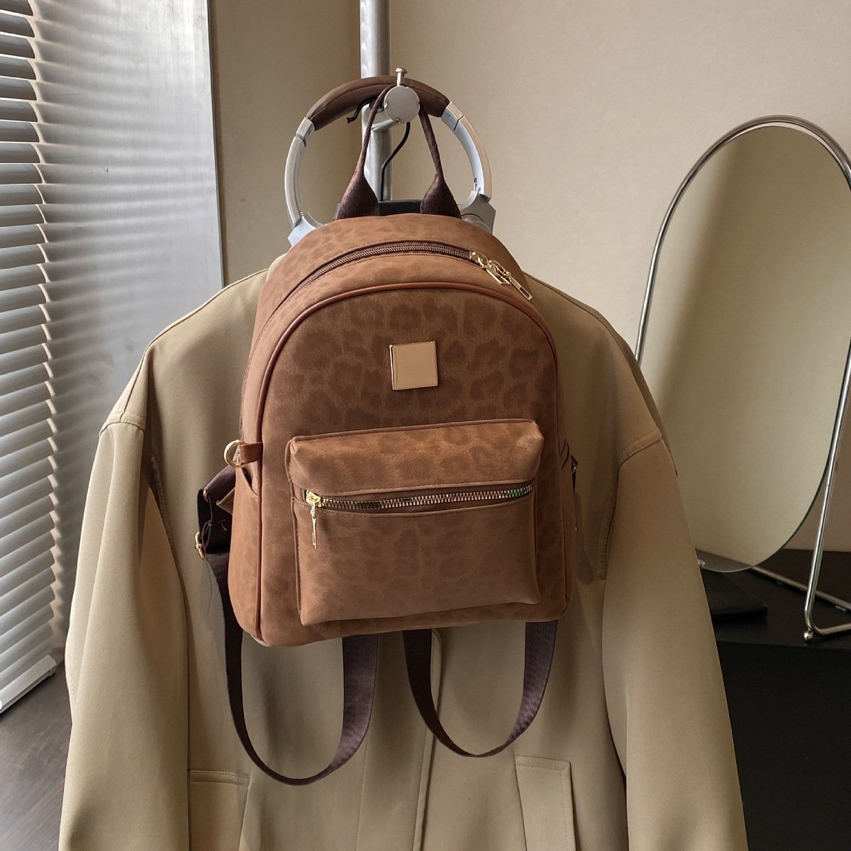 Retro Light Luxury Leopard Print Backpack Lightweight Niche Versatile Large Capacity Backpack Women’s Travel Commuting Bag