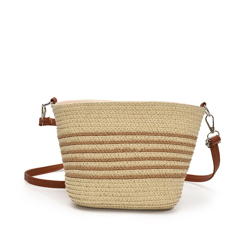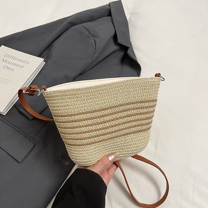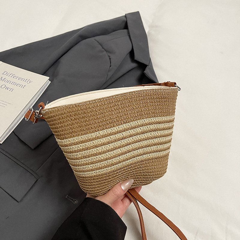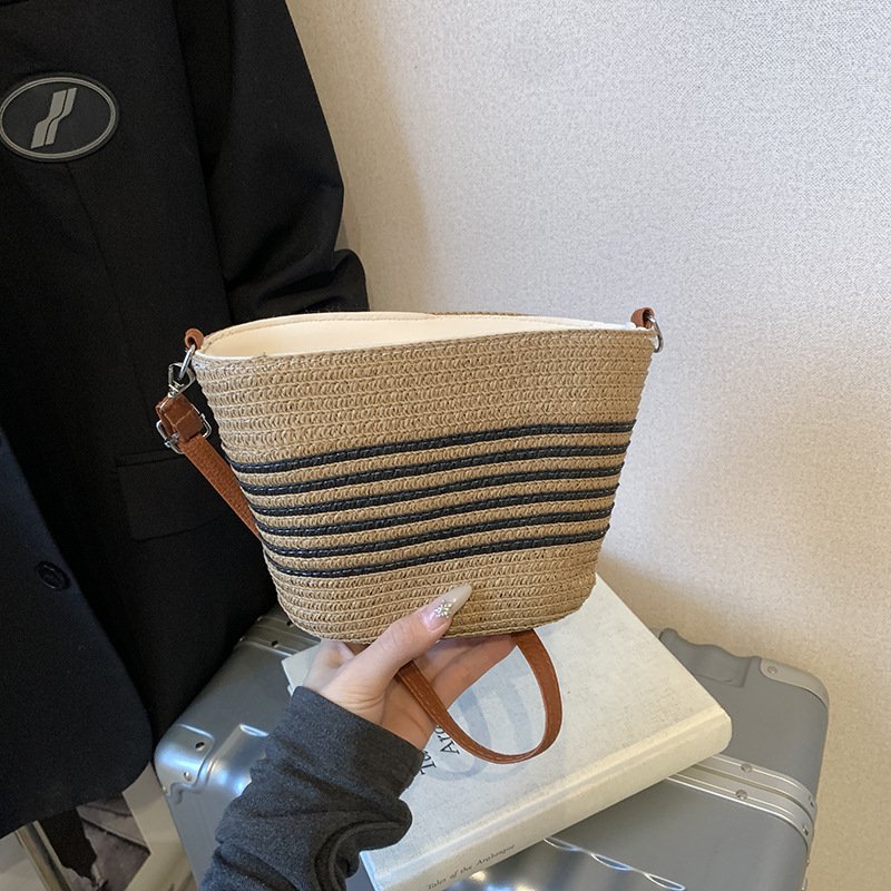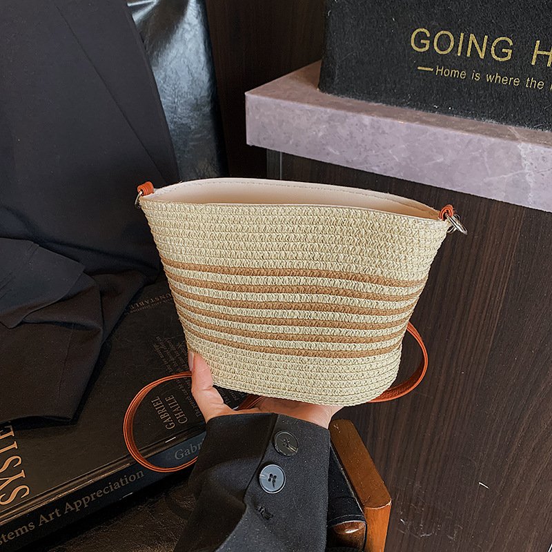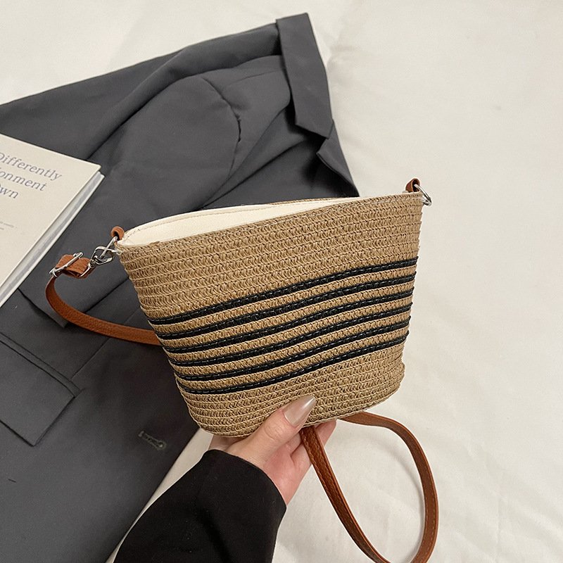 Retro woven small bag Japanese striped crossbody straw bag casual beach bag commuter tote bag for women