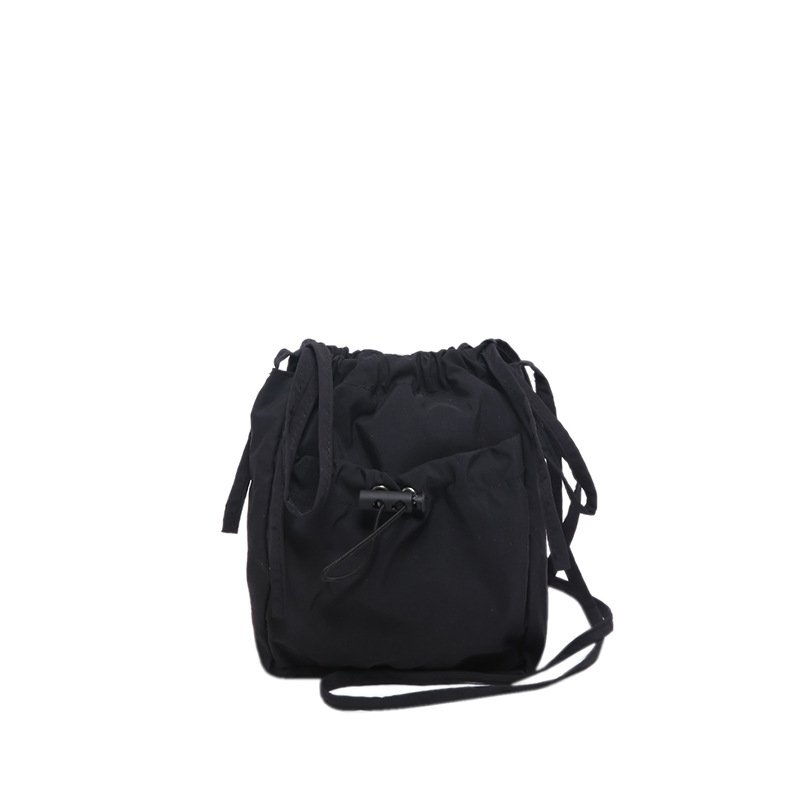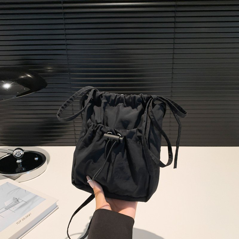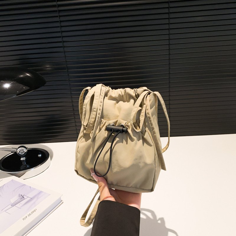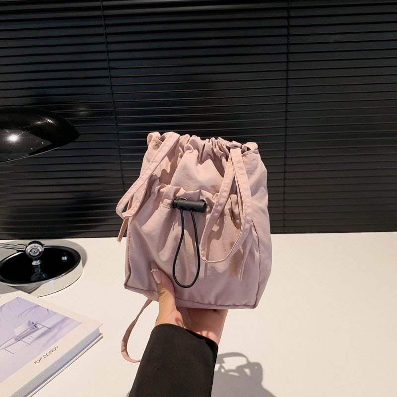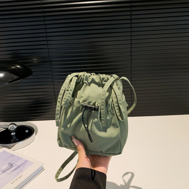 Simple forest style small shoulder bag, lightweight nylon mobile phone bag, lazy pleated drawstring crossbody bag for women