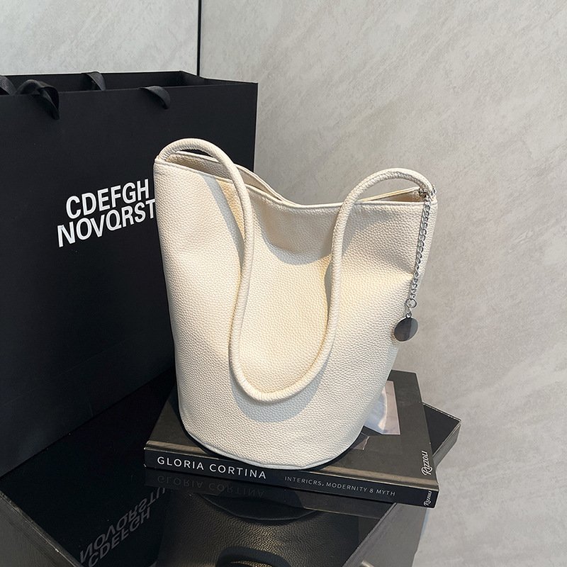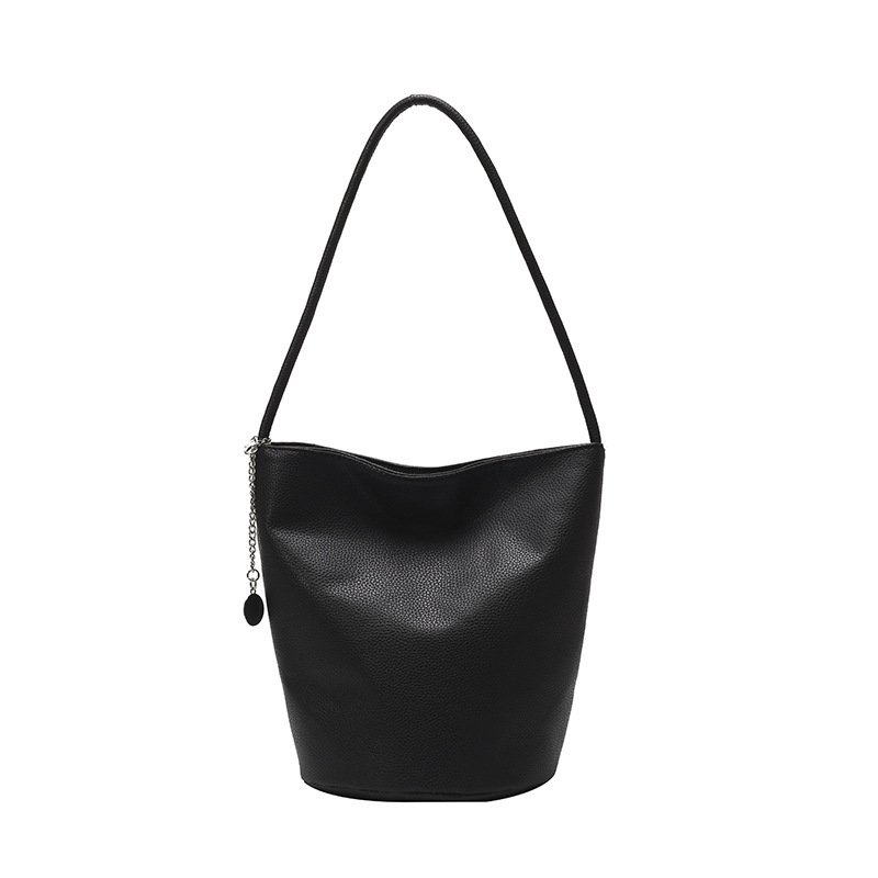 Soft Leather Solid Color Simple Bucket Bag Lazy Style Casual Large Capacity Commuting Shoulder Handbag
