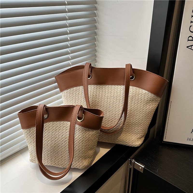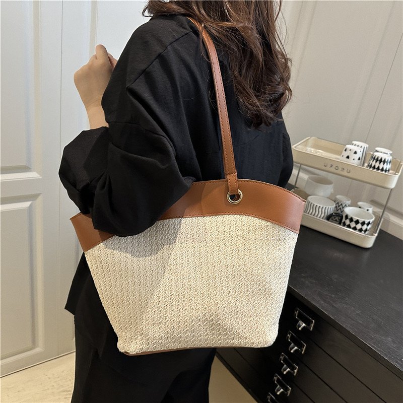 Straw bag for women on holiday and beach, casual and versatile, retro basket shoulder bag, fashionable woven bag