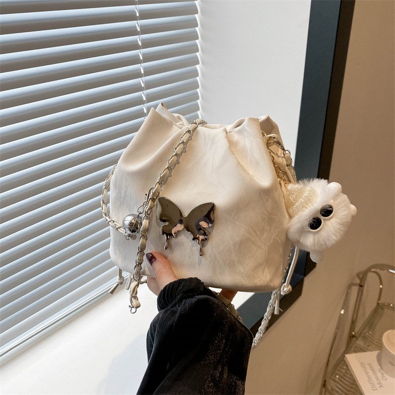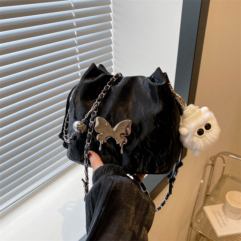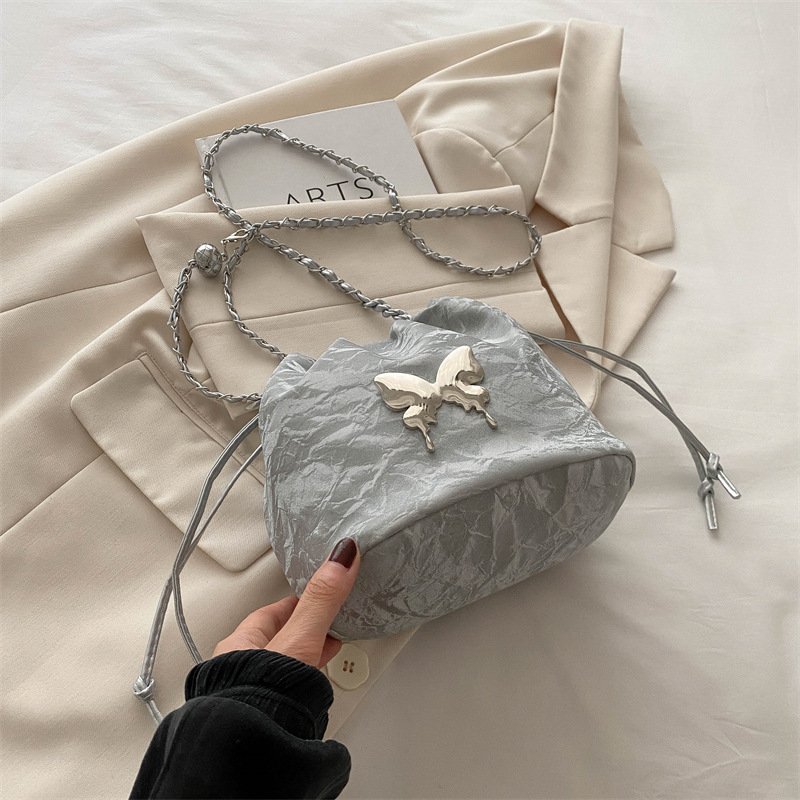 Super popular niche bag, women’s trendy versatile chain crossbody bag, exquisite drawstring drawstring bucket bag
