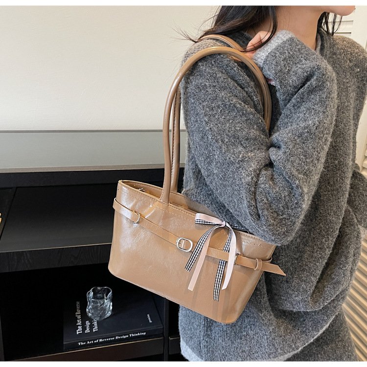 Sweet bow niche underarm bag women’s trendy fashion tote bag simple large capacity bag