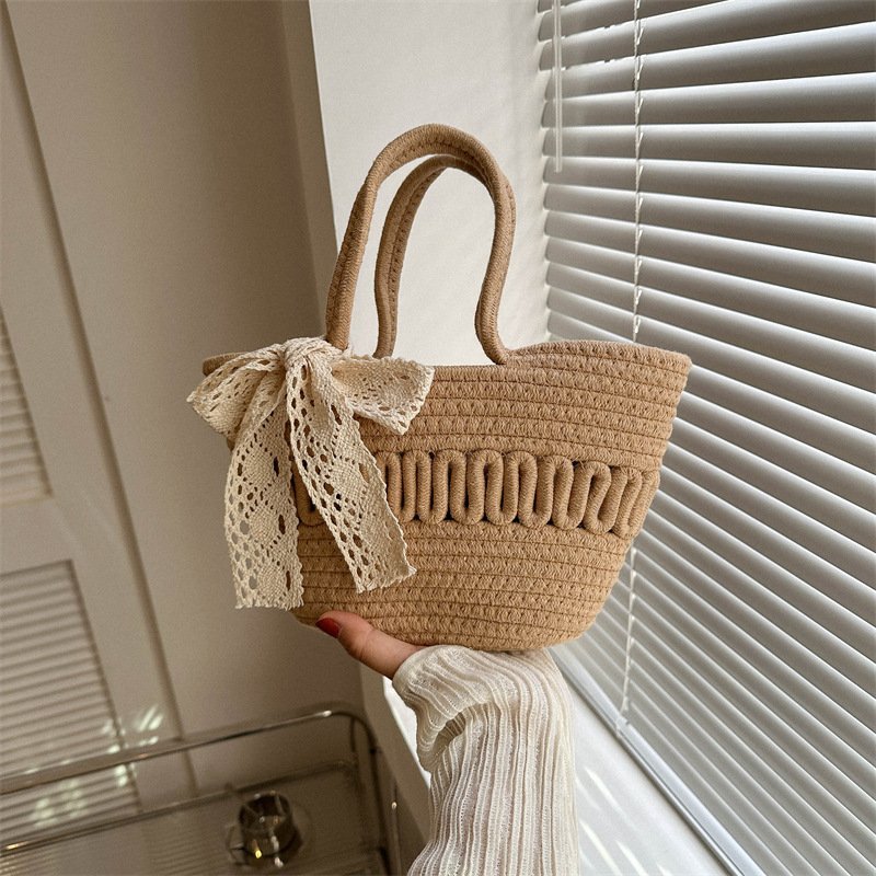 Today’s popular fashion simple silk scarf handbag spring woven shoulder bag vegetable basket women’s bag
