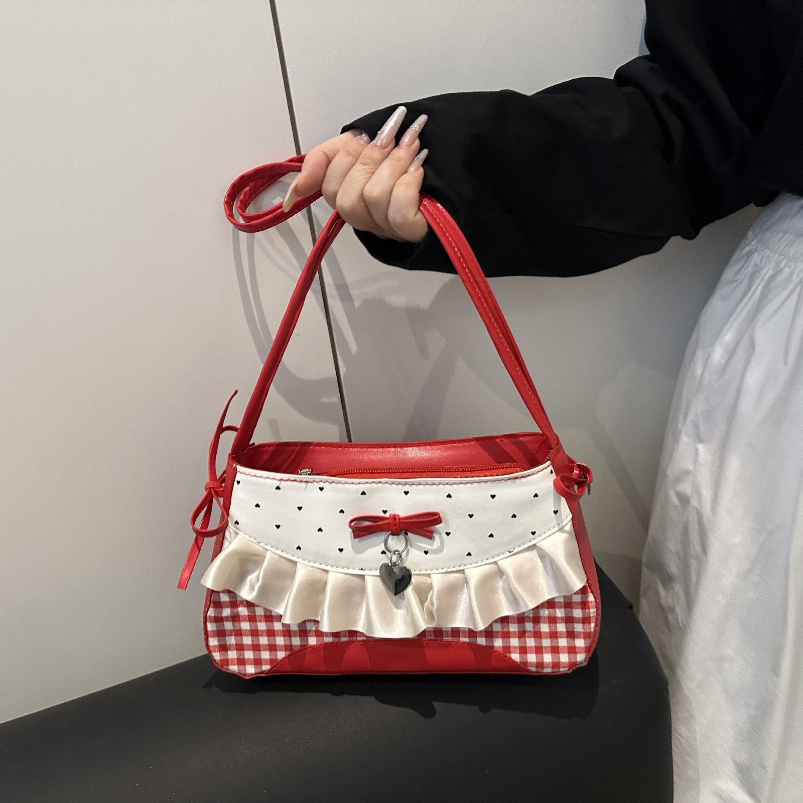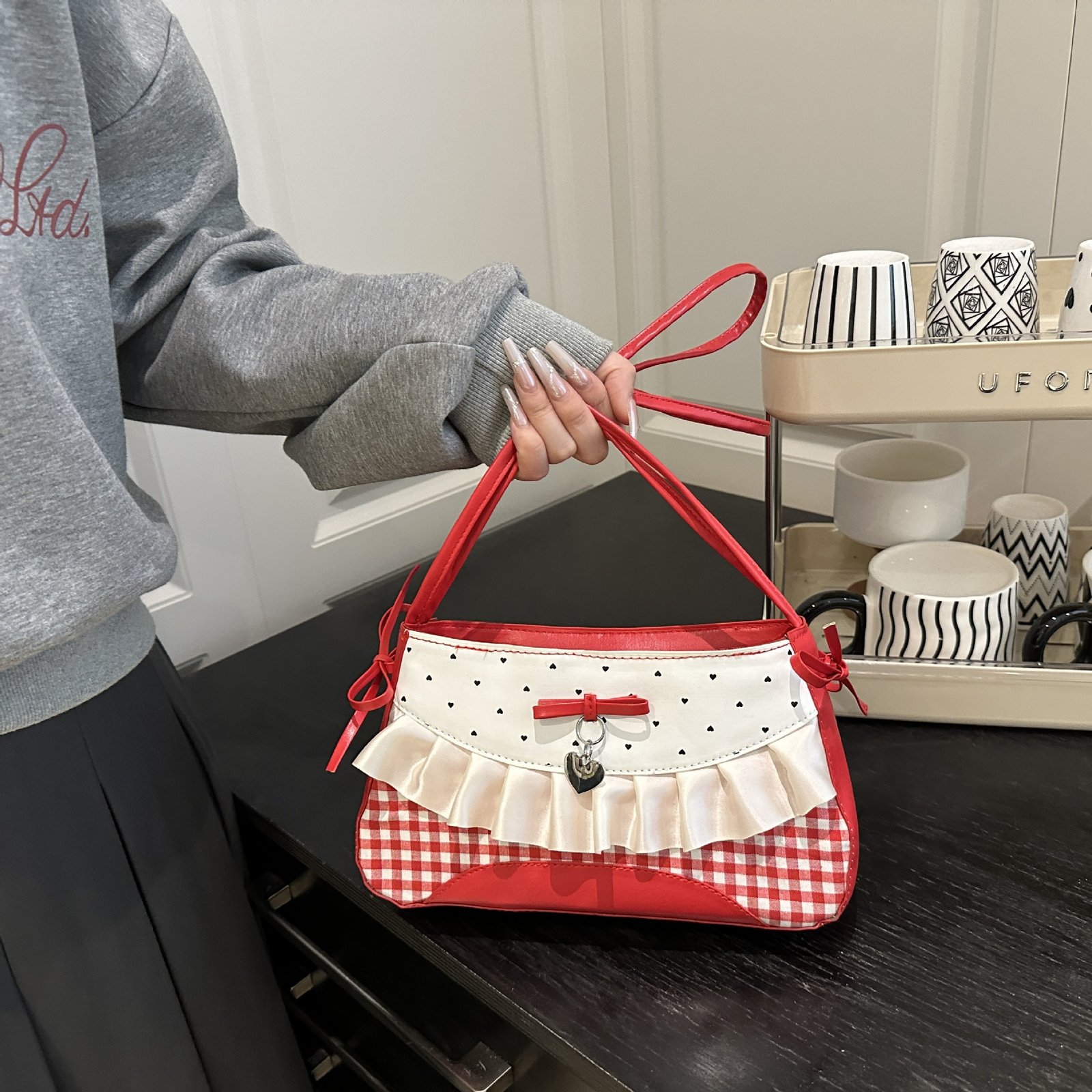 Underarm bag, women’s baguette bag, trendy niche lace, sweet and cool style stitching small bag, single shoulder