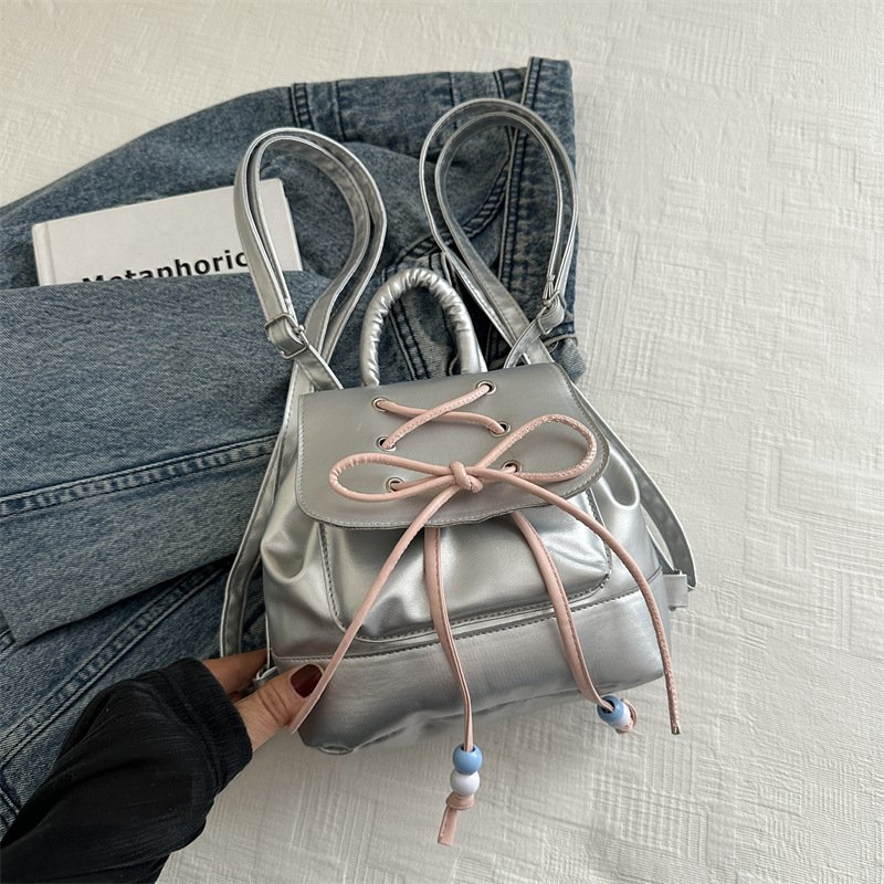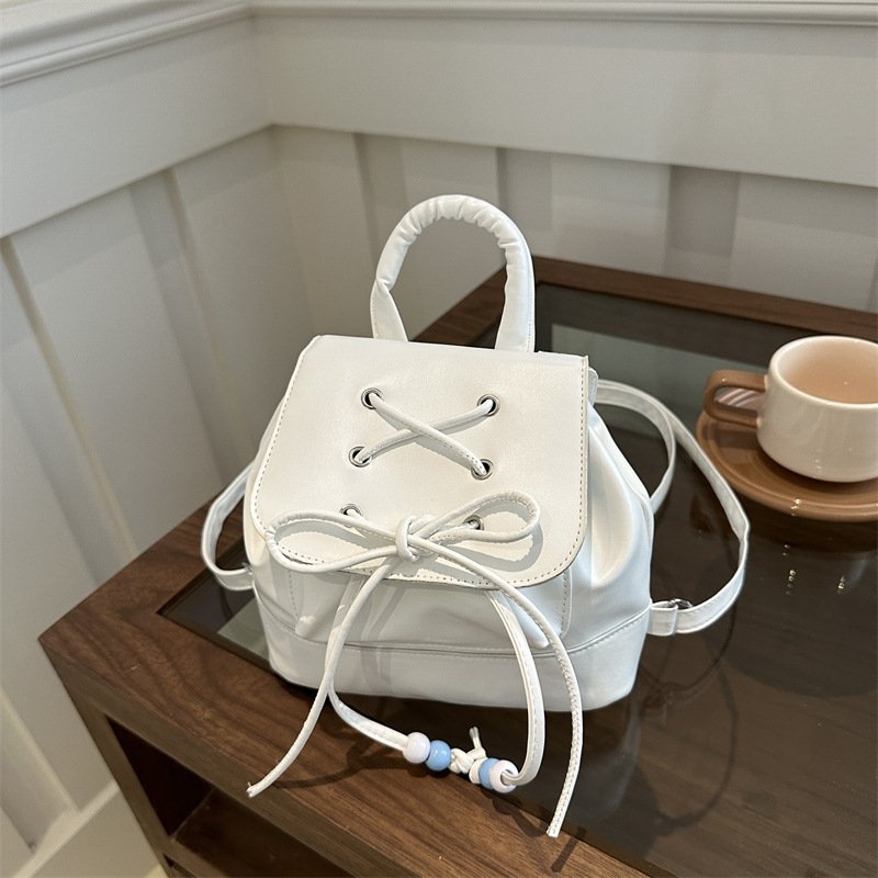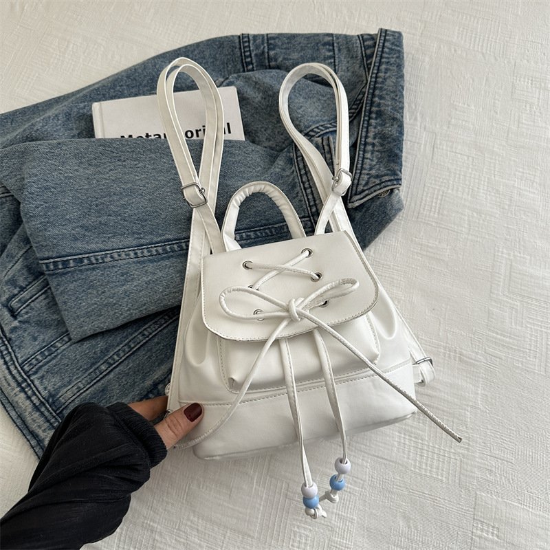 Women’s textured drawstring fashion handbag niche design versatile solid color gentle backpack trendy